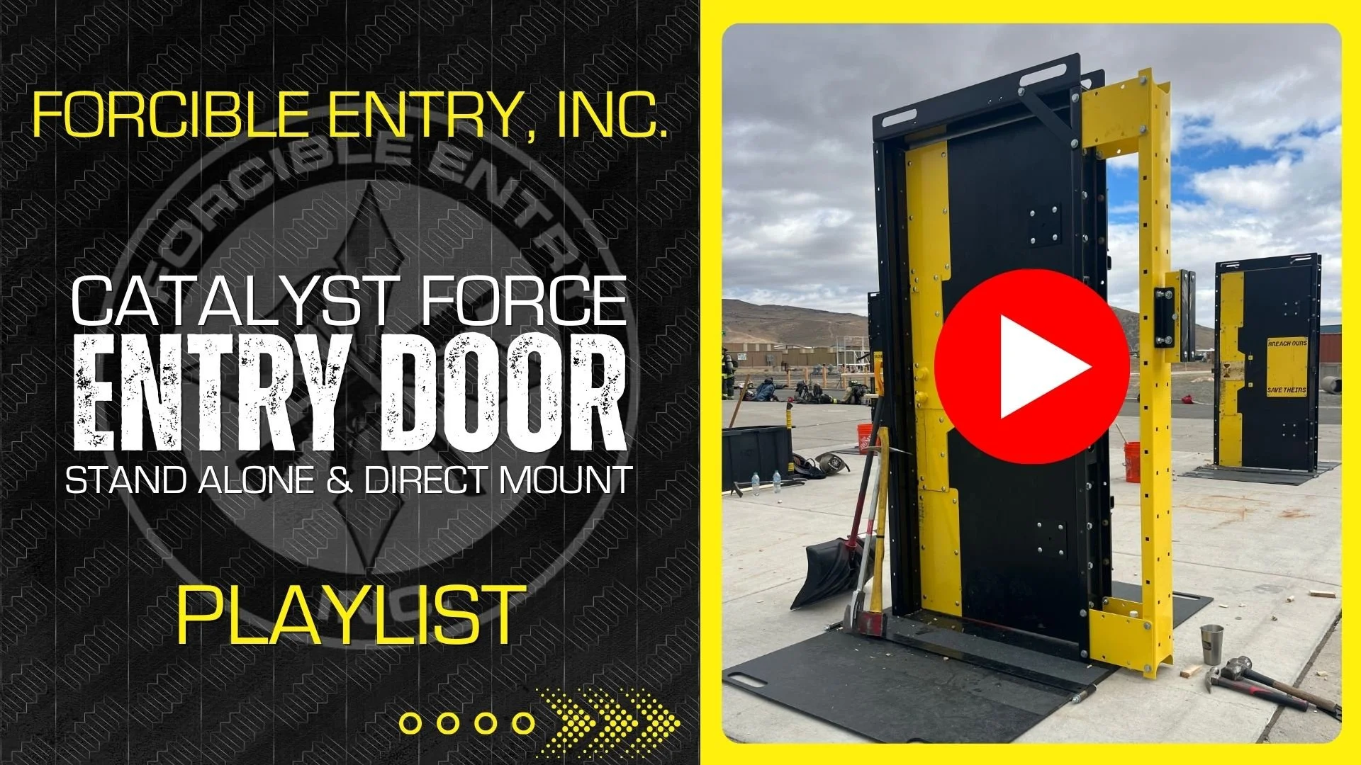 Train on the most realistic door, preferred by hundreds of fire and police stations and nearly every fire academy in California alone. Versatile and customizable to stage out the scenarios you experience in your area of operation. Durability and consistency are the key attributes for the Catalyst Force Entry Door that make it worthy for certification testing as much as daily honing of skills and gaining reps needed to maintain real world proficiency. Note: the CFED-LE comes standard with a Ram Extension Hit Plate for utilizing ram tactics and strategies. All doors come standard with a set of Crush Prop straps, Ram Extension Hit Plate , and Sledgehammer Hit Pad.