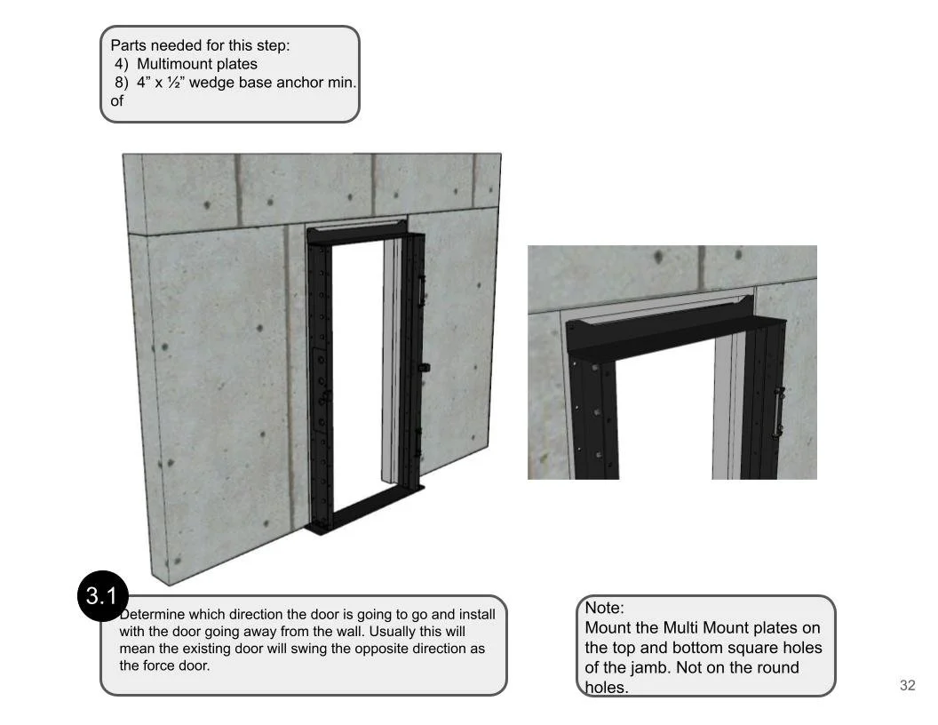 The Direct Mount Door installs into every type structure regardless of substrate. The following manual provides the necessary steps to successfully and safely install our door into the structure of your choosing.