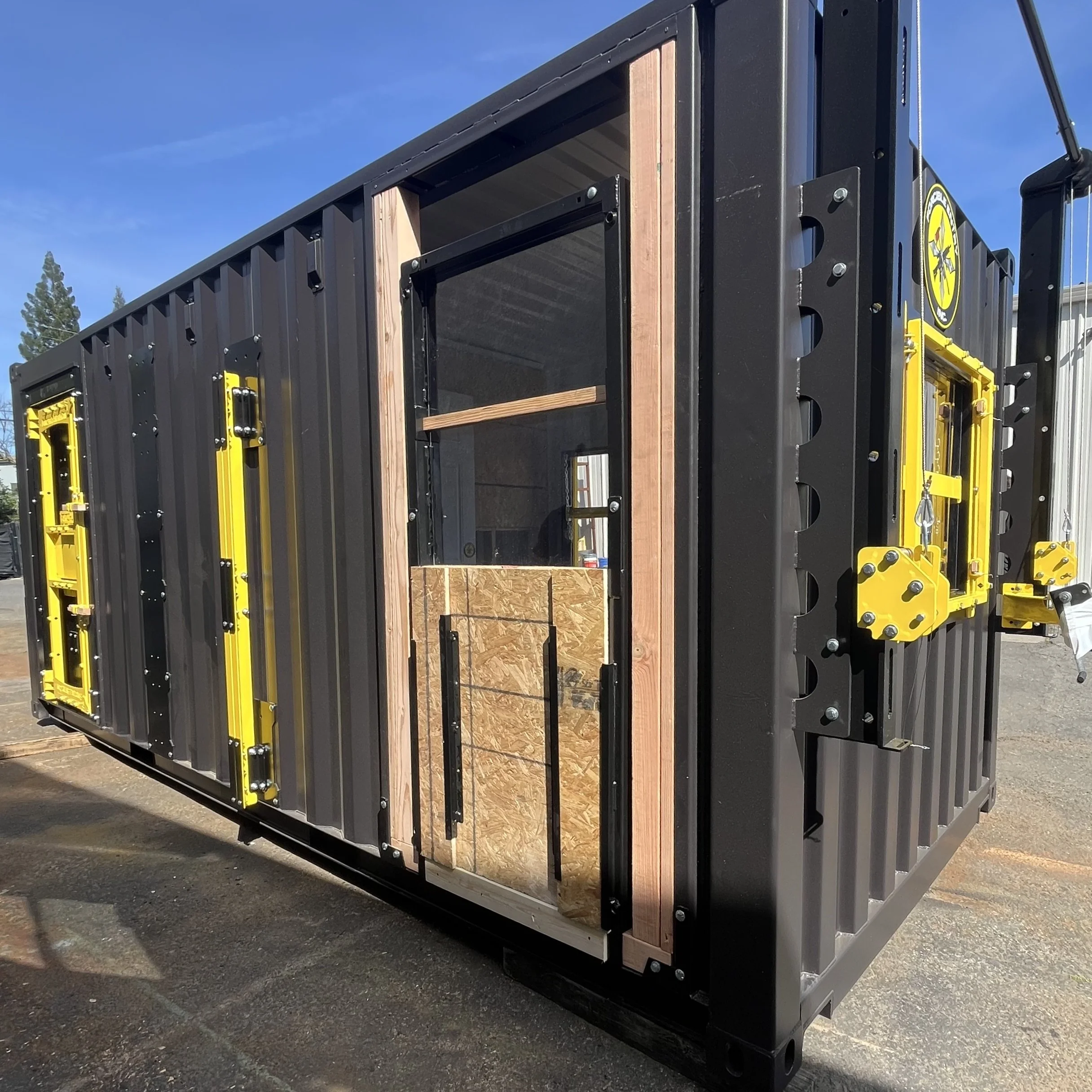 The Window-to-Door is mounted into our Conex Box Training Center inside one of our Blast Walls. It is lag bolted into the wood frame that also acts as a breachable wall. If not permanently lag bolted into a wood frame, it also comes with adjustable clamps to be able to be mounted into nearly any door frame. Depending on the frame and the team, you can either assemble it entirely and then slot it into the pre-existing door frame or build it into the door frame piece by piece.